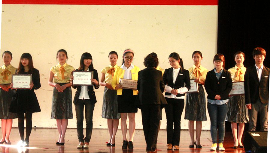 大会在雄壮的国歌声中拉开帷幕。在校领导宣读了各项表彰决定后,大会进入了颁奖环节。获得重庆市2012—2013学年度先进个人和先进集体表彰及重庆师范大学2013—2014学年度共青团系统优秀青年和青年群体表彰的学生代表依次上台领奖。我院2011级小学教育(语文)2班获得重庆市先进班集体称号,学生六舍6522寝室获得重庆市文明寝室称号;2012级小学教育(语文)二支部和2012级艺术教育(书法)一支部获得重庆师范大学五四红旗团支部称号;有6人被评为重庆市先进个人、218人次被评为重庆师范大学优秀共青团员、团干等。会上,大家用持续热烈的掌声表达了对获奖集体和个人的祝贺。大会最后,个人和集体获奖代表分别进行了热情的发言,呼吁广大青年学子发扬“五四”精神,坚定信念,奋发图强,时刻紧跟党的步伐,为做祖国和党的接班人时刻准备着。