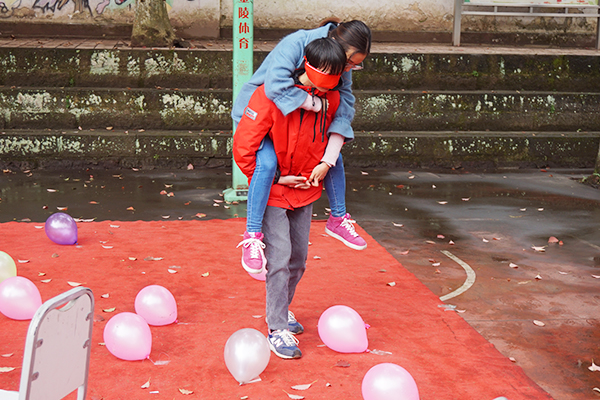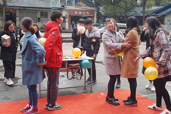 “你是我的眼”游戏考验了好友之间信任程度,在蒙住双眼、仅靠好友的方向提示的状态下避开各种障碍到达终点,这不仅仅要掌握方向,还需要两人的信任才能获胜;“怦然心动”的游戏充满了趣味,好友间夹着气球到达终点不是难事,但在爆气球时,女生们可谓是“不择手段”呀,当然这也是要好友间的默契度才可以向同一点施力,最终使气球爆炸;头顶书本,徐徐走来,优雅大方,犹若淑女。“淑女赛”也是受女生们青睐的环节;还有“说反语”“女生祝福墙”等精彩环节都为女生的游戏充满了乐趣。