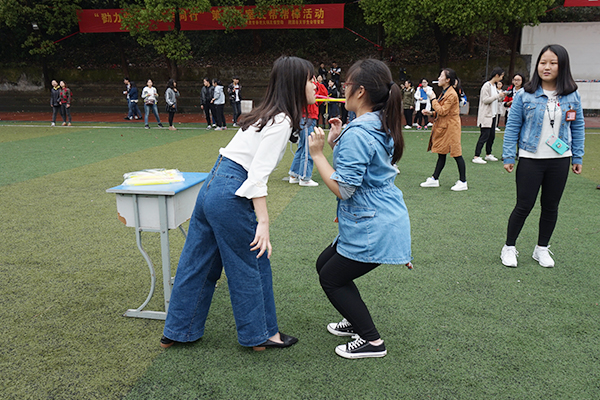 经过前期的宣传,我院学生都积极参与此次活动。我院院团总支书记胡燕老师、梅竹青和余艳婷等辅导员老师、园区辅导员刘金蓉老师以及王仁英老师的出席更是让参赛选手们斗志昂扬!此活动由“展示风采”、“蒙眼过雷区”、“夹珠子”、“吸管传钥匙”、“接力呼啦圈”、“挤气球”、“踩白块”七个项目组成,每个项目都需要伙伴共同合作完成。每个寝室的同学在比赛开始之前都会大声地喊出口号来展现寝室充沛的精神状态。在第一场的比拼当中,1306寝室依靠良好的默契一马当先,赢得了首胜!“踩白块”的“大Boss”就是指压板了,但是同学们依然一鼓作气,咬着牙光脚坚持通关了;呼啦圈可以说是同学们意想不到的环节了,寝室的五个人必须接力转完20个才能通关,而此关的黑马是来自4208寝室的男生们,以183秒的佳绩获得本次活动的第一;最终4619寝室的伙伴凭借良好的合作意识和高超的游戏技巧夺得了桂冠。