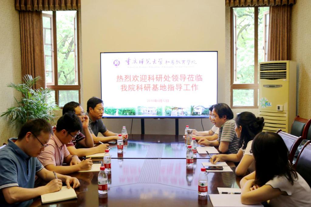 2018612日下午,重庆师范大学科研处处长张全之教授、副处长刘学文教授等一行四人莅临我院指导工作。会议由初等教育学院院长林长春教授主持,重庆师范大学社科科普基地主任郭继明教授、重庆市儿童发展与教师教育研究中心副主任路晨博士、重庆市科普基地副主任王剑博士和基地办公室科研秘书陈放出席了会议。